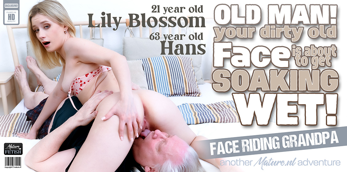 Synopsis: So Grandpa wants to get his face wet? Well let's introduce him to the hot 21 year old Lily Blossom who has a soaking wet pussy ready to ride this old bastards face and mouth until she orgasms!