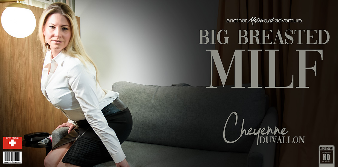 Masturbating Swiss MILF Cheyenne Duvallon with her big saggy tits gets an orgasm