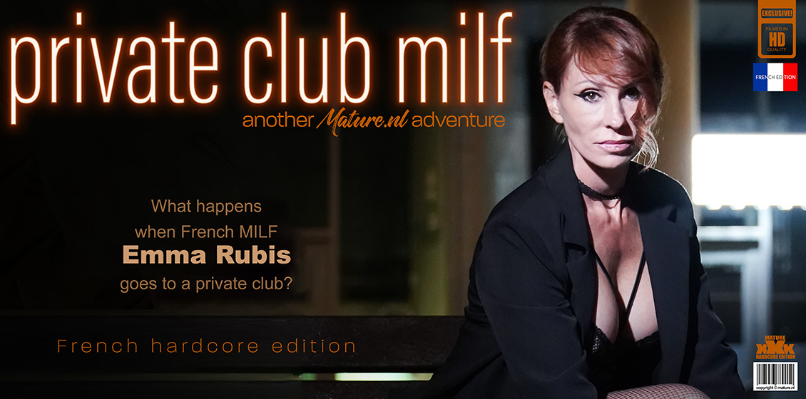 Emma Rubis is a hot French MILF that has hardcore sex with a younger man in a private club