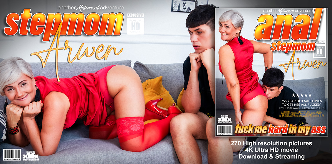Synopsis: When hot 53 year old slim stepmom Arwen walks in on her stepson, she finds herself getting wet between her legs and seduced the young guy for a hot fucking afternoon with loads of anal sex!