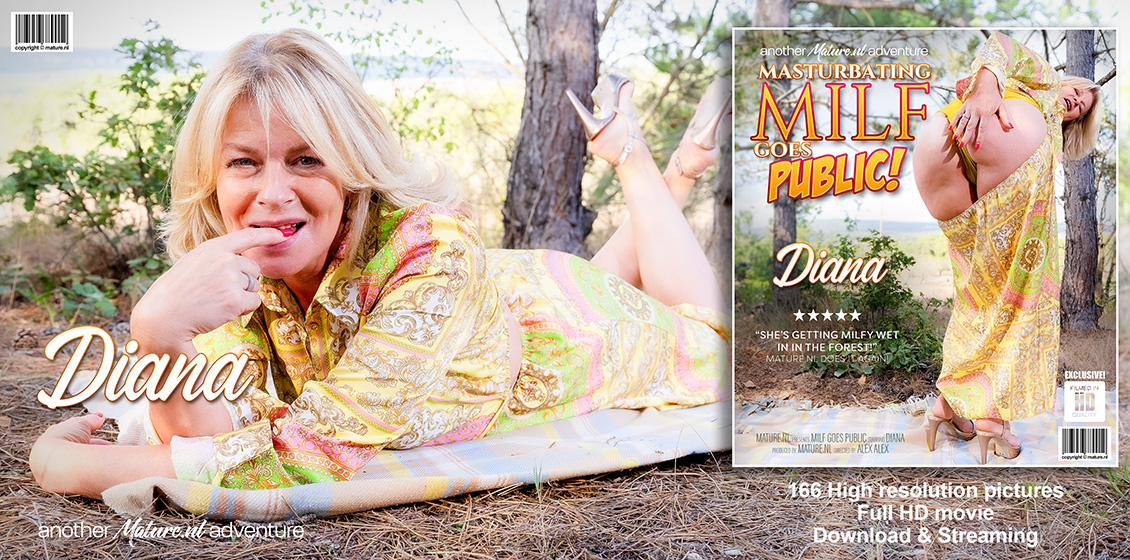 Synopsis: When hot blonde MILF Diana goes out to the forest with a blanket and her toys, you know what will happen. She will get naked in public and play with her shaved pussy between the trees under the warm sun!